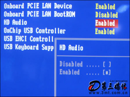 2、将光标移动到(按↑、↓、←、→)“Integrated Peripherals(整合周边设备设置)”,按Enter(回车)键,出现“Integrated Peripherals”页面,将光标移动到“OnBoard LAN(集成网卡)”,用“Page Up”或“Page Down”键选择“Disabled(禁用)”,按ESC键退出“Integrated Peripherals”页面,再选择“Save & Exit Setup(存储并退出)",回车,按Y键,回车即可。