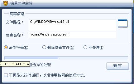 瑞星在杀毒过程中出现(图一)点击删除染毒文件后出现(图二