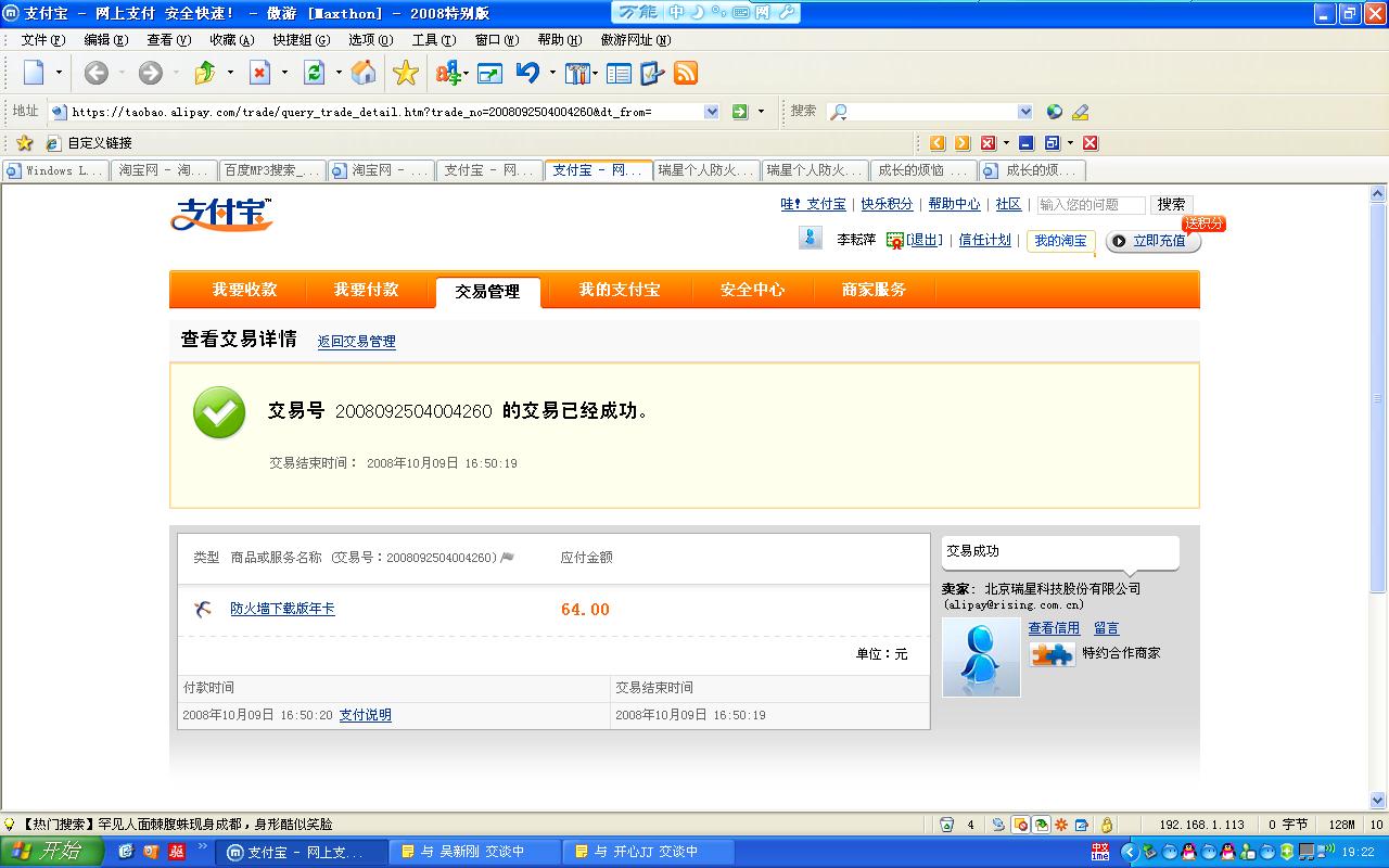 | 即时到账交易 | 防火墙下载版年卡 | 64.00 |