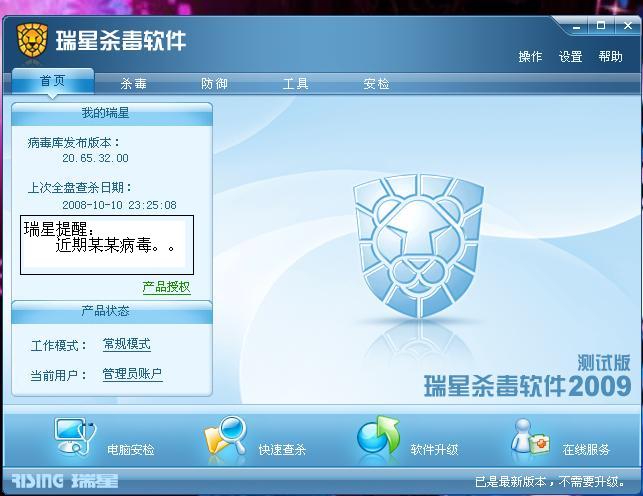 这样看起来这么大的一块信息中心。。。。和旁边的我的瑞星大小差距这么大。。这样也反映出瑞星多么重视广告。。而不是重视产品。。。。信息中心这么大完全没有必要。。。也是浪费界面的布局。。