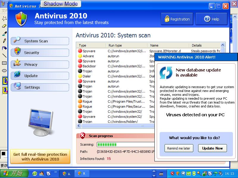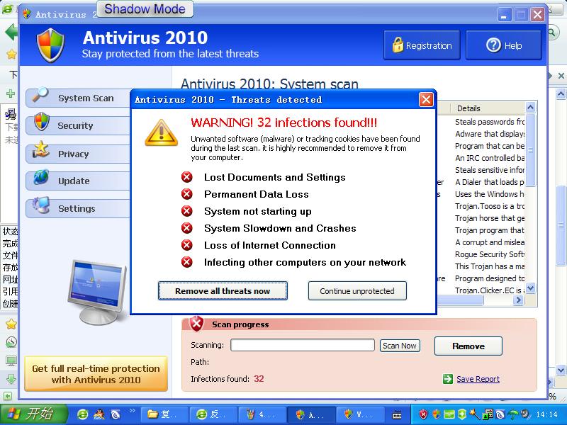 本人近日截获了一个仿造杀毒软件的病毒。这个病毒简直是太嚣张了。