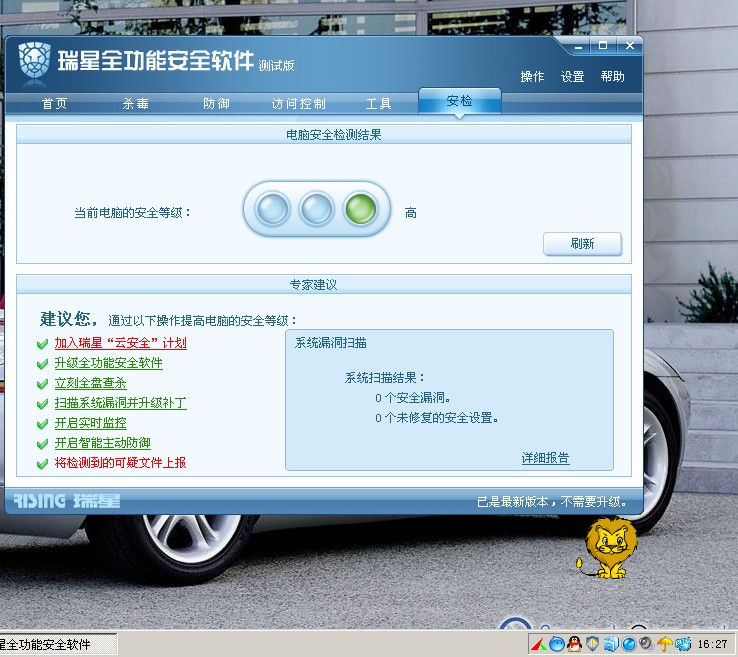 这样说来的全功能还是不够人性化。。。希望重视细节性的问题。。。现在我也不希望瑞星能改。。但是我不想憋在肚子里所以说出来。。