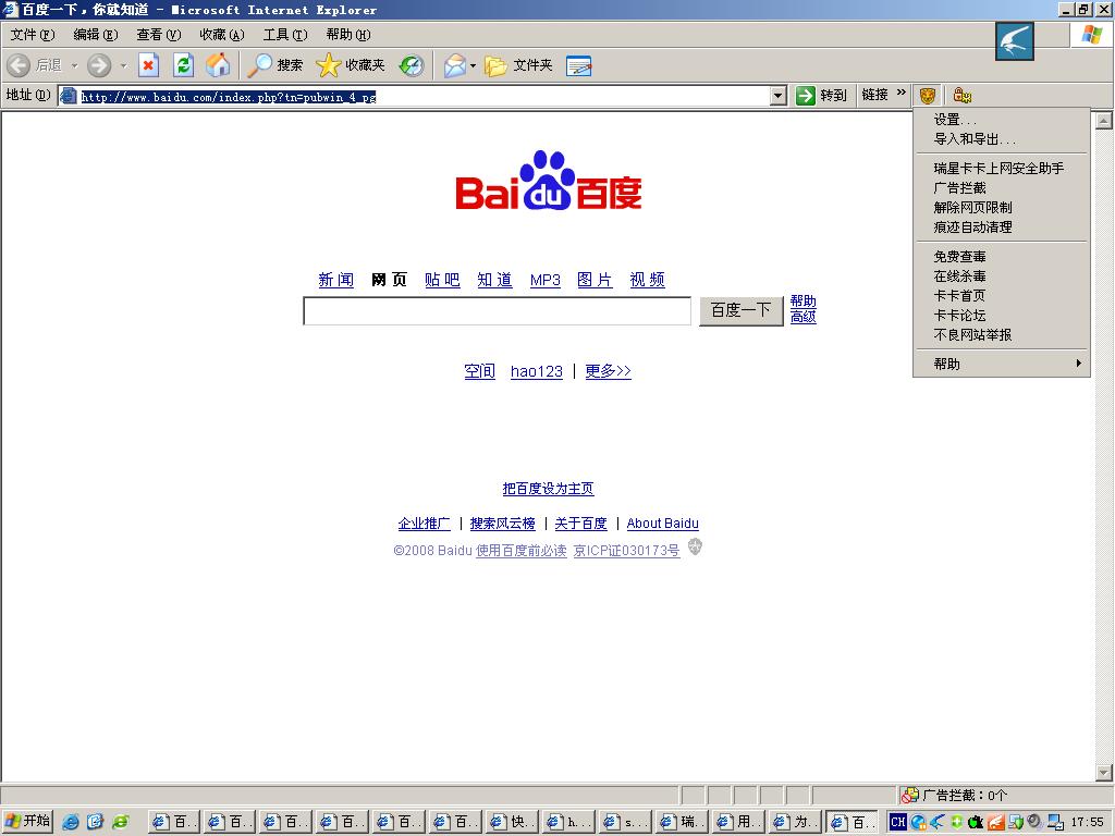 因为我有固定的业务,上固定的网站很多,而IE地址栏里能存的数量十分有限,收藏夹存的都是细节的网页,而我又常常需要搜索东西,需要搜索的关键字保存在搜索栏的,同时也不占用IE的地址栏,因为网址输多了新的会把地址栏末端的地址给抹除,以后要打开不是很方便,而卡卡的搜索栏就能给我这个方面的帮助,搜索的历史不占用IE的地址栏下拉列表
