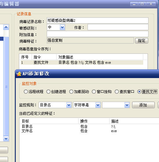 此规则的含义是:当有病毒复制自身,并创建(修改)autorun.inf文件时则报警。