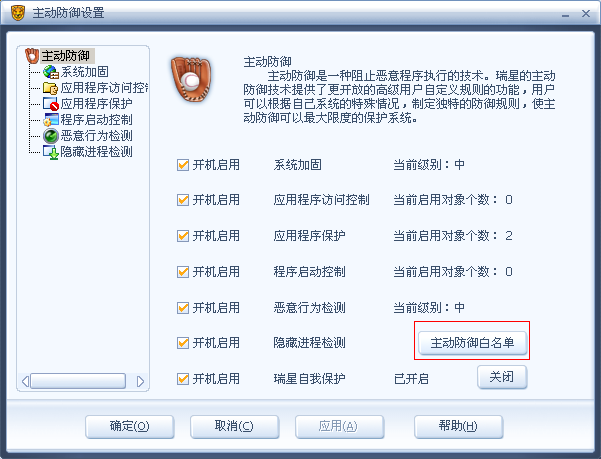打开杀毒软件点击设置——防御设置后按照下图来进行添加: