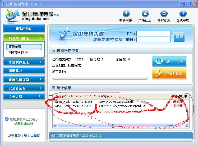 回复:win32.Hack.RessDT.p.53248病毒..瑞星08-09都杀不了......