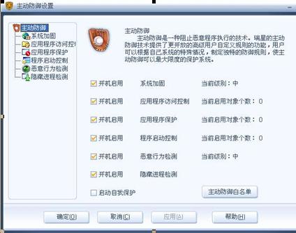 打开主动防御设置