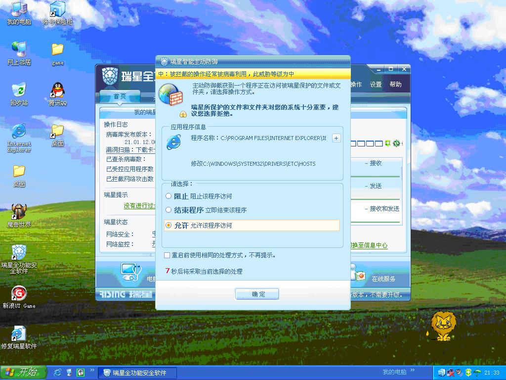 问题现象:IE会被关闭 每次打开都要重复点允许通行