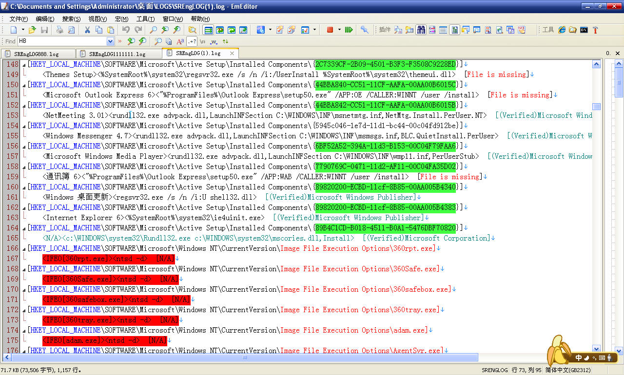 EmEditor.rar 用这款编辑器来看扫描报告,运行绿化.bat后再使用