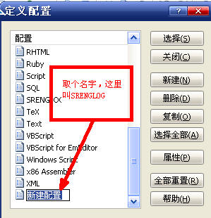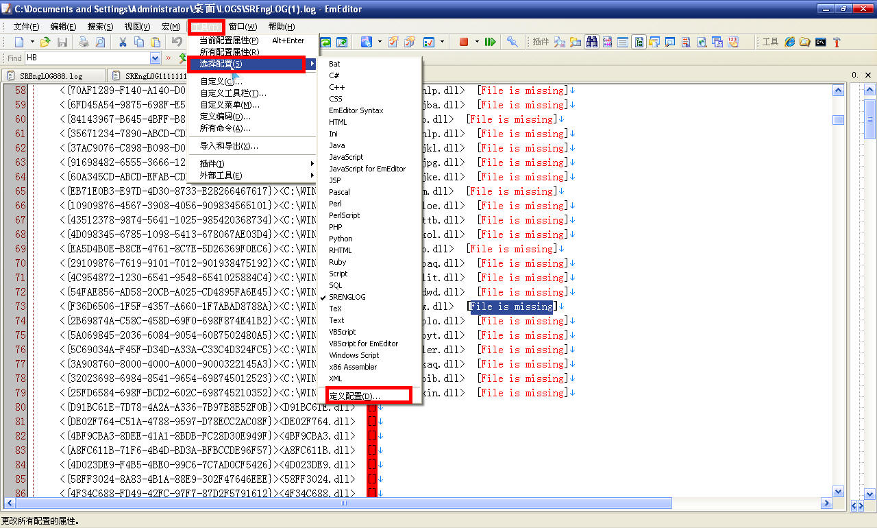 打开EmEditor.exe,然后打开一份日志,,工具-选择配置-定义配置