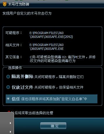 360 5.0.0.1021更新到5.0.0.1030木马防御行为报警