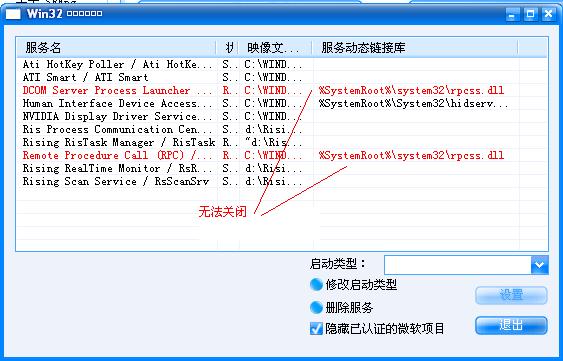 启动项目 -- 服务 -- Win32服务应用程序之如下项禁用: