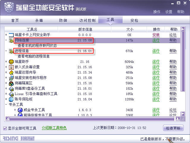 而且瑞星在08上就开始尝试由旧有的单纯杀毒软件转型为综合安全软件,而在最新的2009上这个转型已经悄然完成。尽管在外观上09与以往版本变化并不是十分明显,但是内部变化是非常巨大的查杀方式的改变尤其是对网页木马防御的上重大突破!我必须再次强调瑞星2009尤其是RIS对网页木马/病毒的效果十分出色!