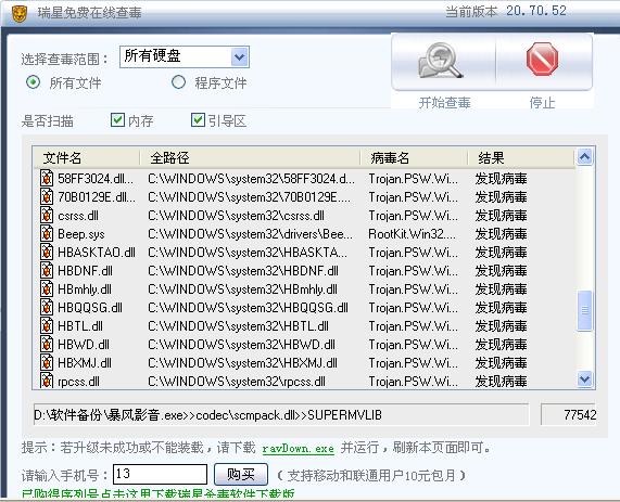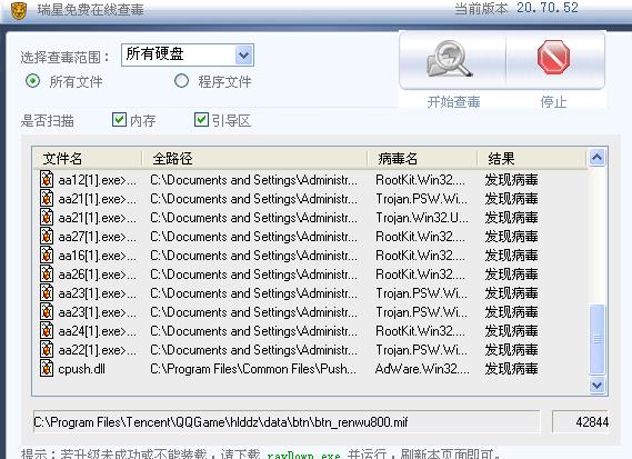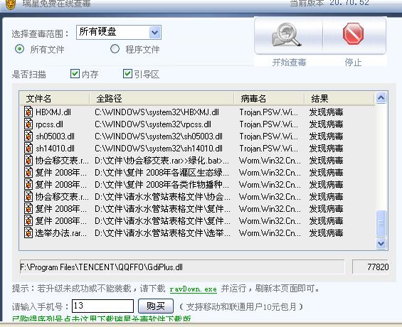 注意:扫描前请尽量关闭QQ、游戏、下载工具、媒体播放器等应用程序