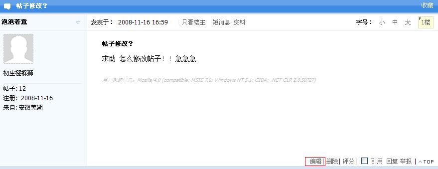 用户系统信息:Mozilla/4.0 (compatible; MSIE 7.0; Windows NT 5.1; CIBA; .NET CLR 2.0.50727)