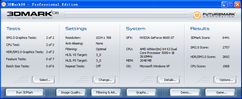 再加张图,下载了3DMark06,试了下。结果如下,给个评价??