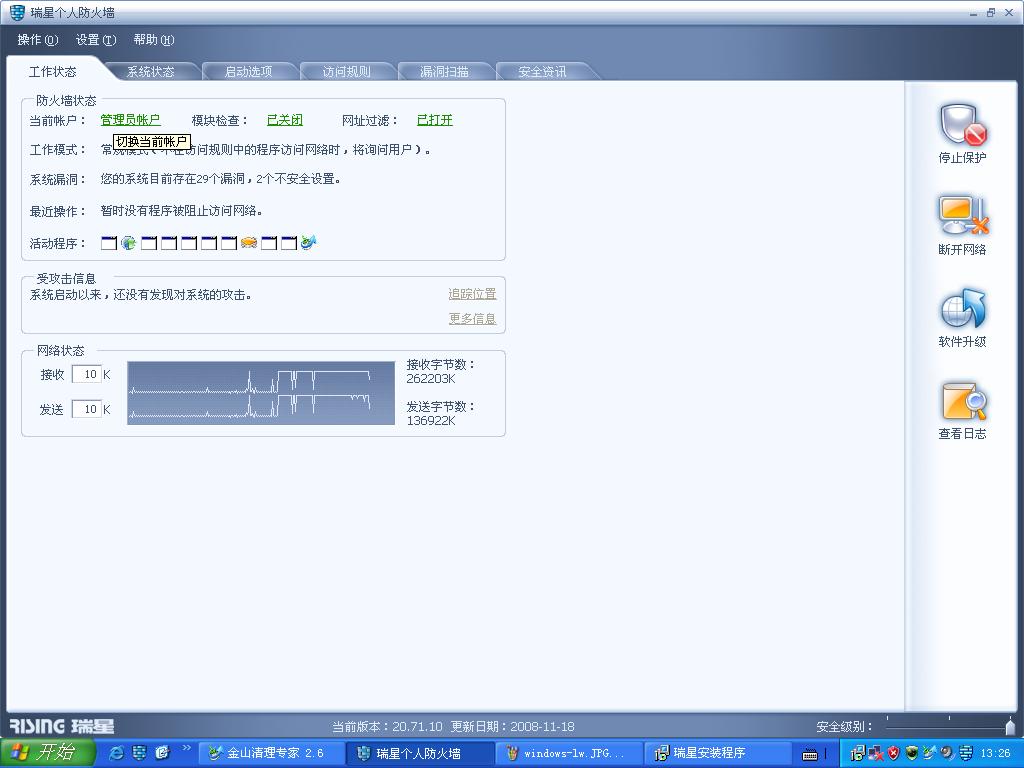 为什么我的电脑打开瑞星防火墙查看网络状态发现发送字节数很大