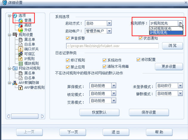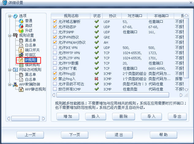 第三步:打开瑞星防火墙/设置/详细设置/IP规则,如图2: