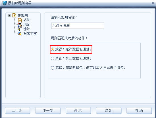第四步:选中“允许域名解析”后,点击下方的“插入”,会弹出“添加IP规则向导”,规则名称自己随便定义,点击“下一步”,如图3
