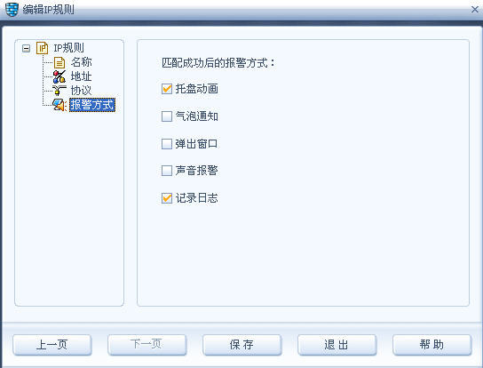 第七步:报警方式选择“托盘动画”和“记录日志”选择“完成”,如图6: