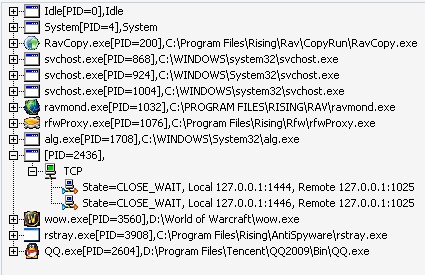 今天上网玩游戏wow,上线一会断线,再上一会又断,我查看进程里没有不认识的