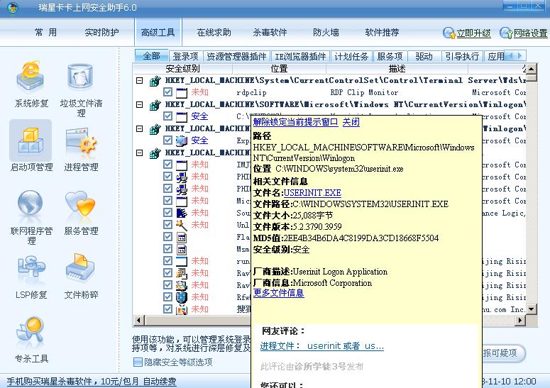 正常的userinit中的内容应该就是c:\windows\system32\userinit.exe,