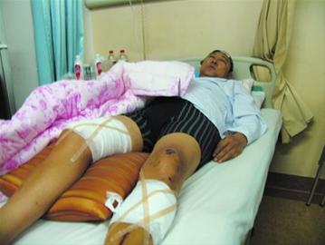邢德章在本溪市中心医院接受治疗。他的头部被砍掉了骨头渣,两条腿都被扎伤。可自己为啥被砍,他也弄不清。金松摄