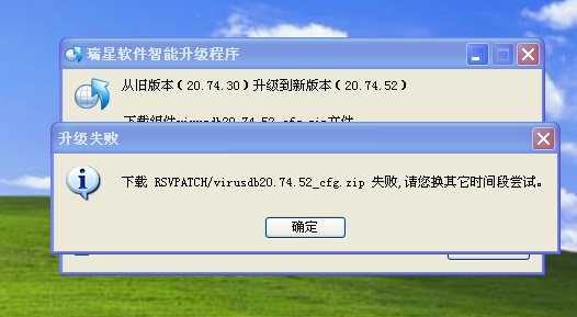 杀毒软件版本20.74.30之后就不能升级,提示“下载