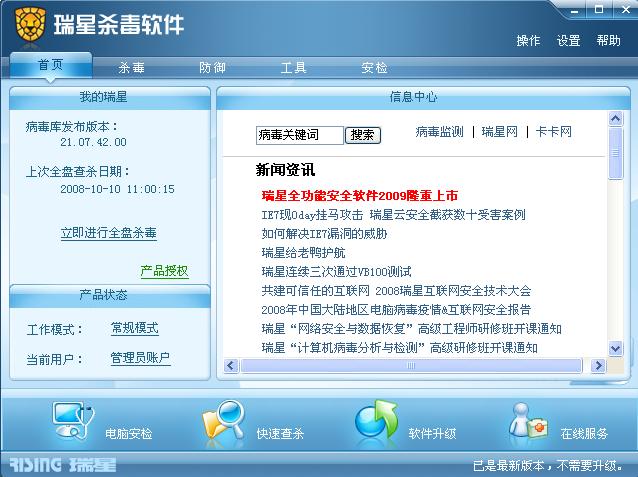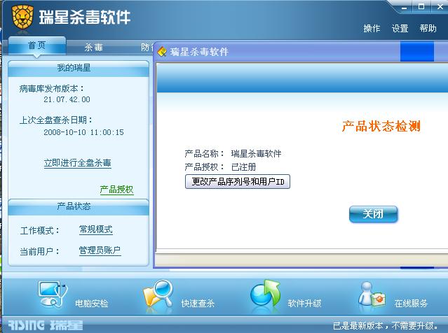 瑞星2009有单机版下载了用咱们自己的ID就可以