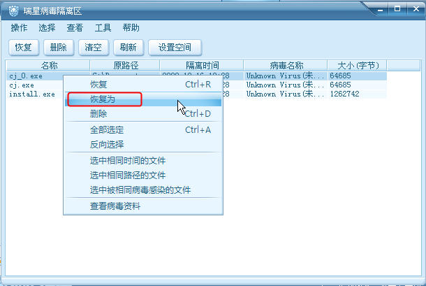 要是瑞星杀的话,你把这个文件从隔离系统里面恢复出来,然后再上传,把整个隔离区文件夹上次没用