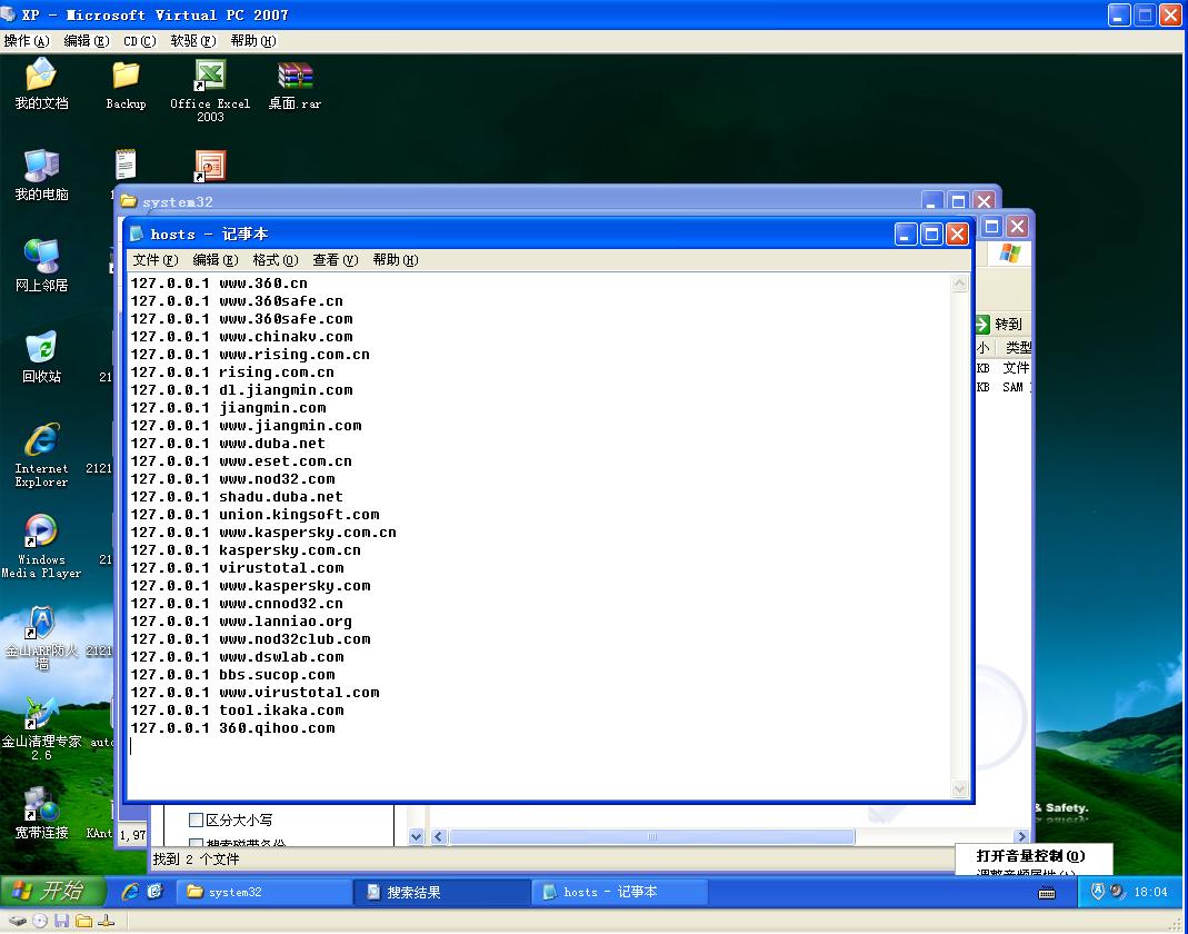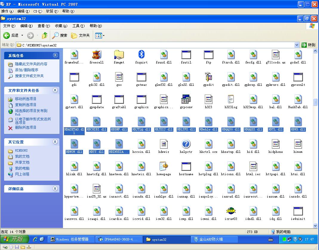环境:XP的Visual PC运行后发现SYSTEM32出现N个文件