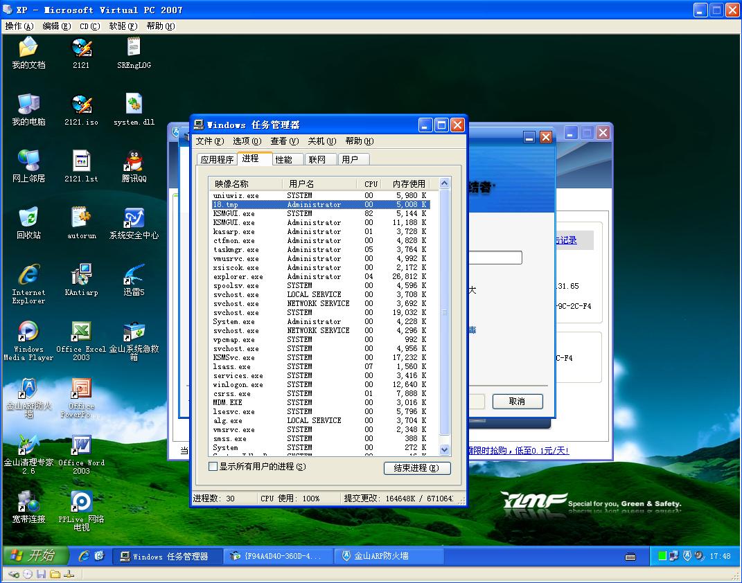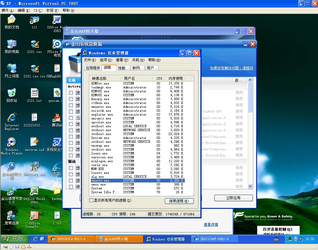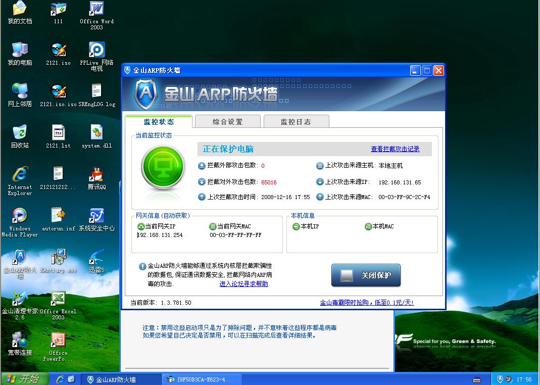 过一会,金山系统急救箱和ARP防火墙没响应,赶快断网否则。。。。。