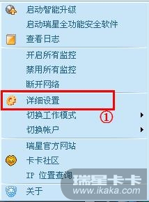 1.右击桌面任务栏的“小绿伞”选择“详细设置” 如图1
