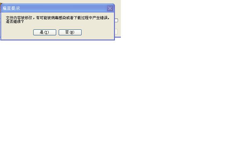 我原来的卡卡助手是瑞星2007套装版里的。昨天升级后发现保护功能不能自动打开了。今天到卡卡主页上下载,可一运行就说:已被病毒感染或没下载完。再次下载还是这样。而且发现文件长度不是7M多,而是4M多一点。不知是何原因?谢谢解答!