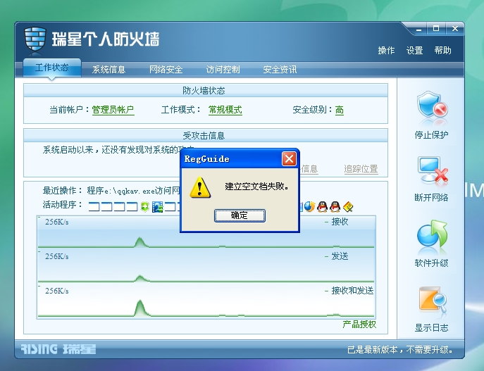 回复: 打开瑞星防火墙后出现"建立空文档失败"