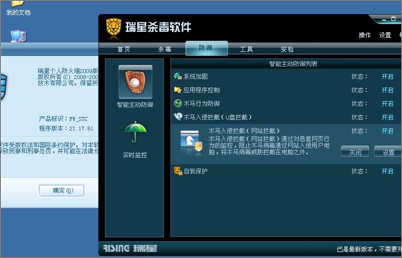 我今天升级到2009了,发现防御里和网上介绍的少了一项“网络监控”,是不是因为我装了卡卡的问题?
