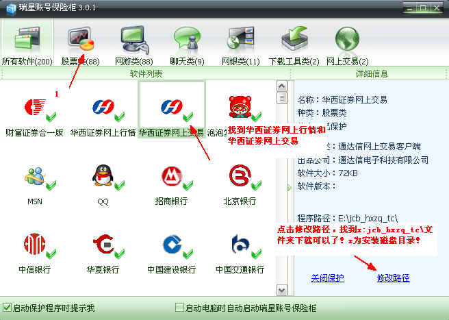 升级为2009后,瑞星账号保险箱把我的《华西证券》软件改为了《财富证券合一版》,我点击本机上的华西证券网上行情按钮保险箱会自动保护,但是点击华西证券网上交易