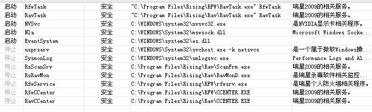 举个简单的例子,ravccenter 和rfwccenter 都是瑞星程序通讯所必须的进程,停止了一定会出现问题的
