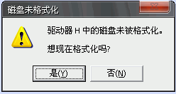 双击U盘盘符,显示磁盘未被格式化,选择:“是” 进行格式化