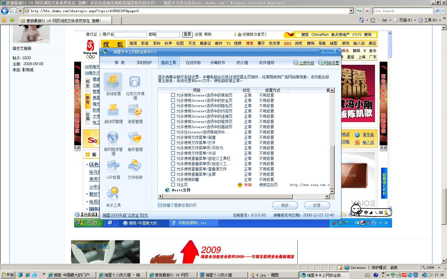 回复:更新最新21.19 网页浏览文体依然存在 急啊! 并且在桌面出现修复瑞星软件的文件!