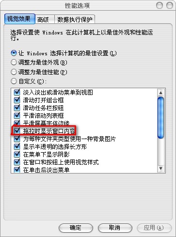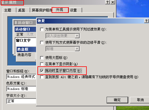 不知从何时起,拖动窗口时若不放鼠标左键,窗口就是一个框在移动(如下图),而以前窗口确是拉到哪儿走到哪儿。我要如何改过来啊?