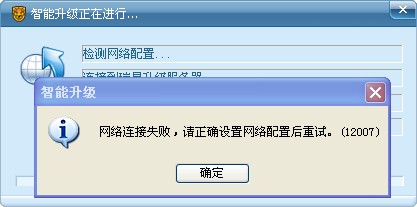 显示: 网络连接失败,请正确设置网络配置后重试。(12007)