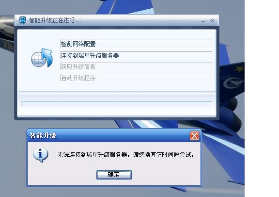 更换本地连接设置里的dns服务器地址也可以,可能是升级服务器没有得到正确解析导致的