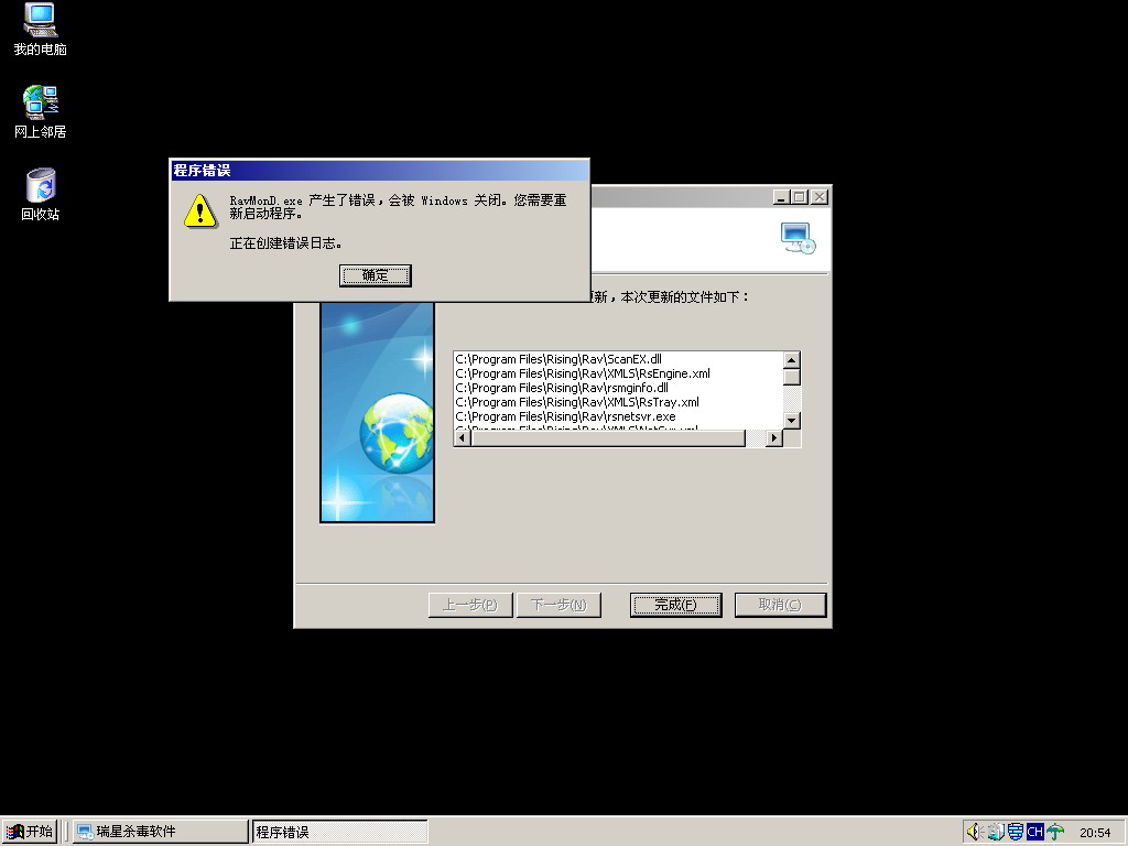 [attachimg]477695[/attachimg]说多少遍了,没蓝屏!!!是升级成09版或者下载09版安装后,系统反复重启,不得已,进安全模式,用最近一次正确配置进入系统后,瑞星报错,小绿伞变红!!!!什么时候能搞好!!