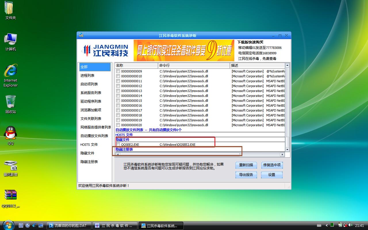 隐藏进程和文件 还有隐藏的注册表都无法看到!!!