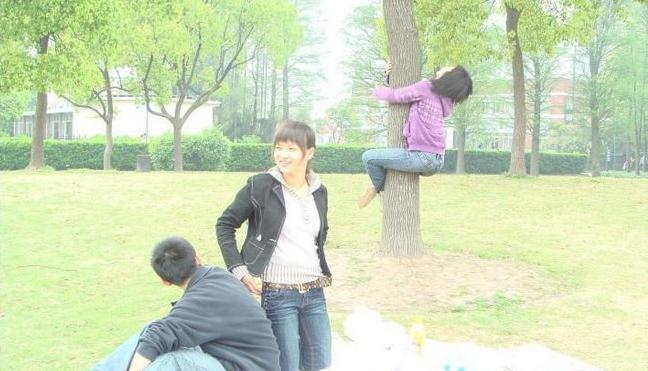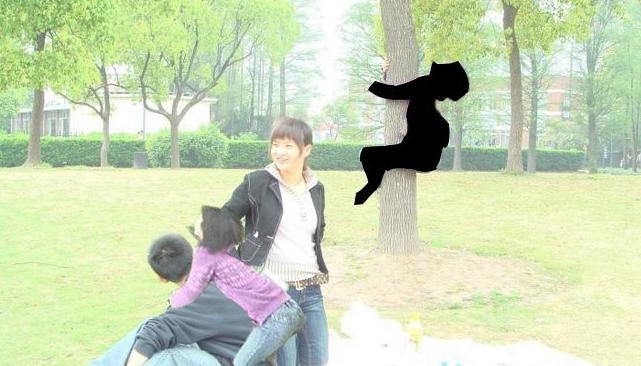 麻烦PS高手把后面爬树的女人ps掉。