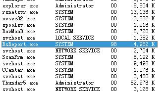 比如我正在玩三国无双4,玩着玩着就突然卡住了,然后切出来要半天,打开任务管理器,就看到出现了Rsreport,将其关闭继续玩,可是大概半小时左右又出现了,一旦关闭经过半小时左右一定会再自动启动,我在没有开别的程序的时候也出现过这个程序,也是自动出现的