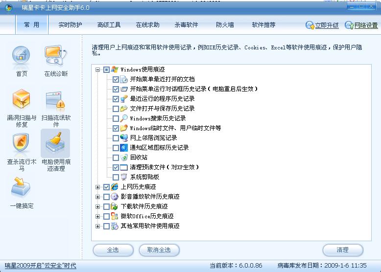 或者是使用卡卡安全助手的电脑使用痕迹清理功能清理一下临时目录,如图: