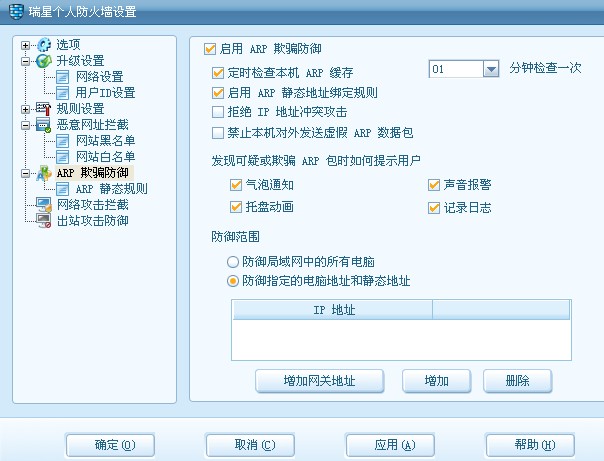 智能升级后总关网络监控的IP包过滤和ARP欺骗防御???/?