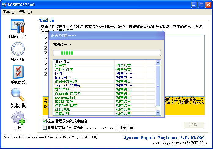 解压后运行 mySREngLdr.com 按下图操作来进行扫描